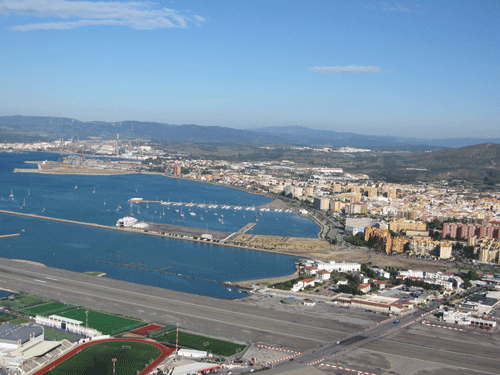 ジブラルタルはスペインがあるイベリア半島の突端に突き出た半島で、大西洋から地中海に入るジブラルタル海峡の要害の地となっています。