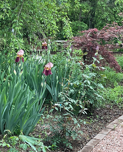 バラ園はしっかりした良いつぼみがついています。右はジャーマンアイリス…。