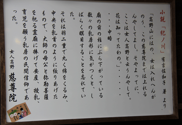 私は有吉佐和子の小説「紀ノ川」を通して慈尊院の事を知りました。