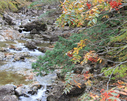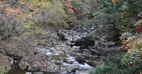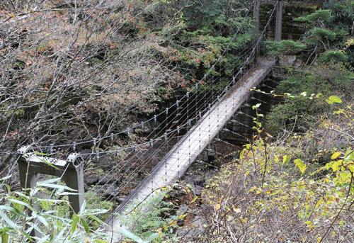 上の二枚は吊橋から見たシオカラ谷の写真…。
