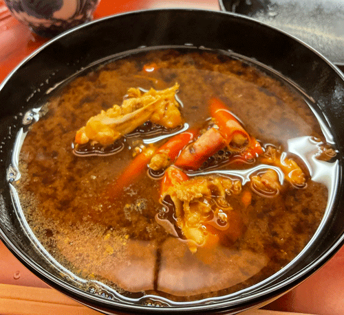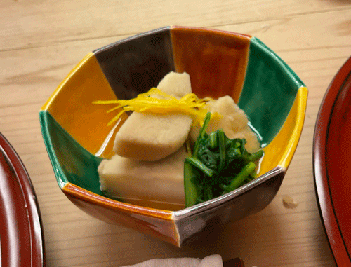 汁物は麩と食用菊だったのだけれど、黄色が綺麗に捉えられていない…。