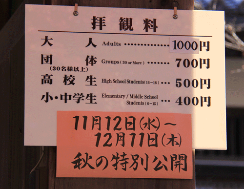 邸内は色々に意匠を尽くされ、展示品も秋の特別拝観のために織田信長とか豊臣秀吉、徳川家康の直筆手紙など展示されていたのですが、当然写真に撮ることは許されず。