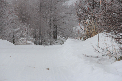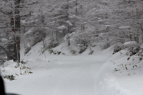 一番左端の写真で、写真の右側を見て頂くと赤白の棒が立っているのですが、これは道の端を示すためのものです。