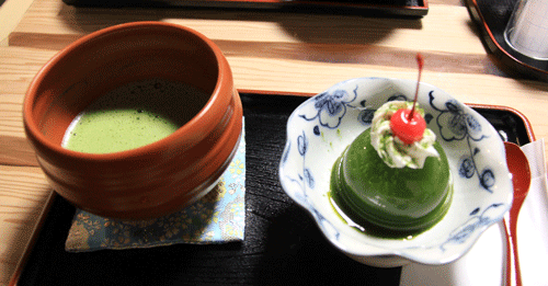 私の注文は左がお抹茶、右が抹茶わらび餅。