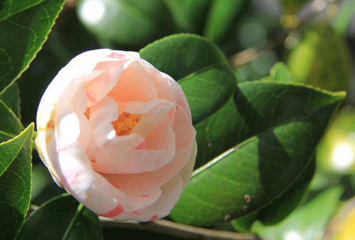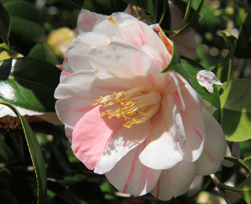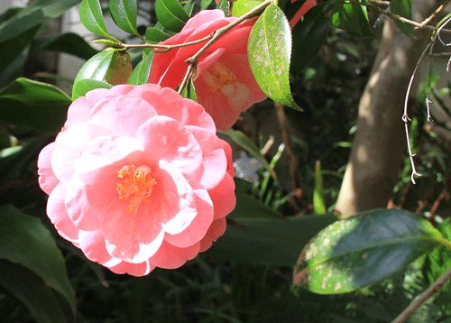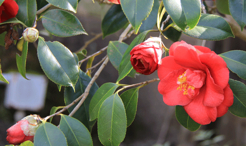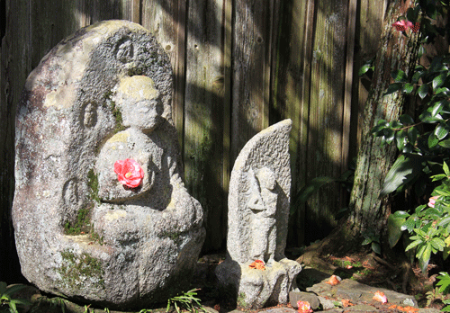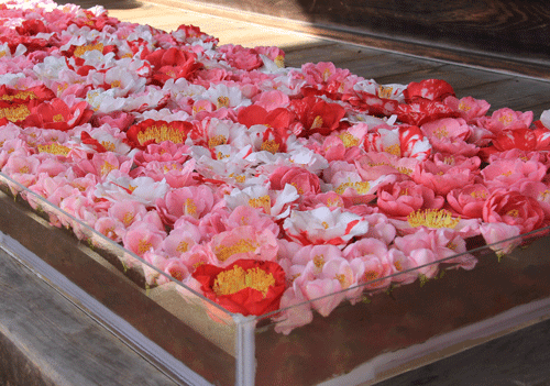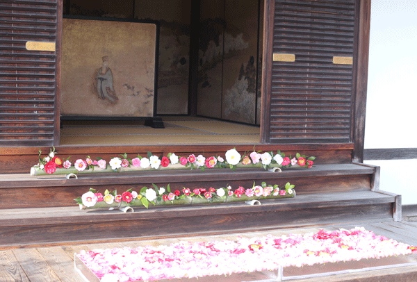 門をくぐってまず目に入るのは邸内への入り口に飾られた椿です。