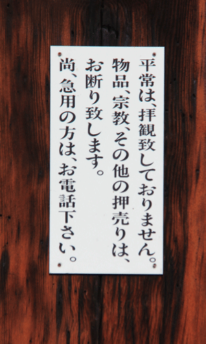 門の左側にかけられている白い札にはご覧の通りに書かれています。